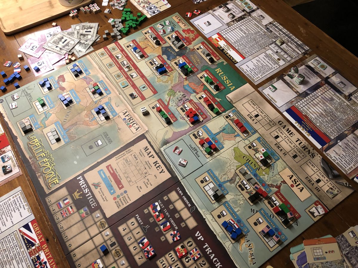 1v1v1v1,德奥合并算一家,然后就是英法俄。每家都有自己目标去算分。小solo了一下,感觉还行,小小毛线的程度吧,bgg居然评分8.0吗,感觉有水分……适合四人吹吹水。