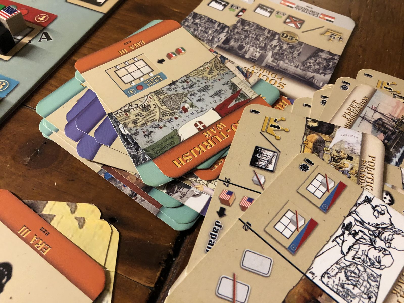 总之是类似那种放方块的政治棋……卡牌挺简单的,没什么文本,就是图标。